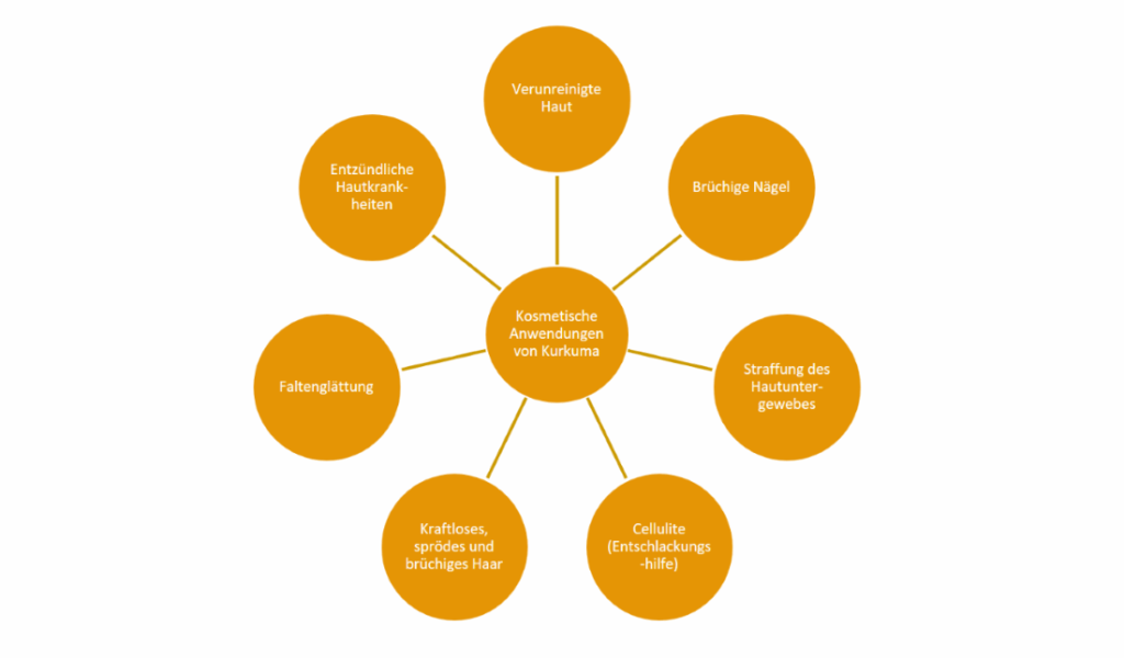 Abbildung: Wichtigsten kosmetische Anwendungen von Kurkuma.